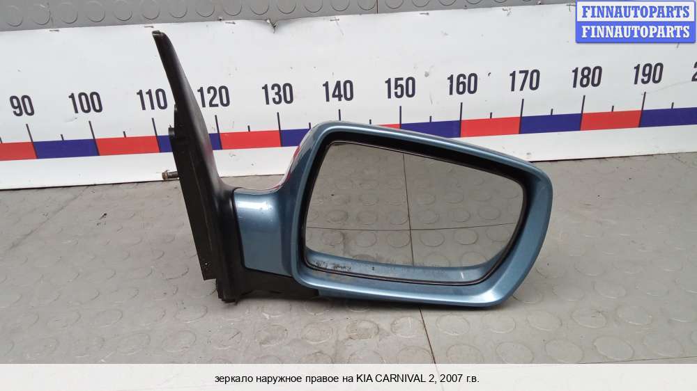 Компания FINNAUTOPARTS занимается продажей контрактных (б/у, бывших в употреблении) запчастей для иномарок. В нашей компании продаются только оригинальные запчасти из Европы, Японии и Кореи, которые не имеют пробега по РФ. Если вы хотите приобрести боковое зеркало (правое) для а/м Киа Карнивал 2, смело обращайтесь в нашу компанию. Все наши менеджеры — профессионалы своего дела, и с удовольствием помогут вам купить запчасти, в том числе, боковые зеркала правые, на Kia Carnival II (VQ) и другие автомобили.